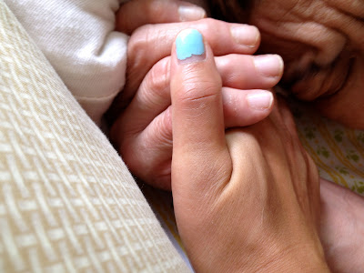 No one ever, ever in their wildest dreams can imagine their invincible, infallible parents like this. To say I cried when I saw her? I walked in. She was laying down on the bed. I looked into her eyes, held her hand. She squeezed back a little. I managed to say, "I'm here mom. It's me." I am not sure I even got the words out because I wasn't breathing. And that was it. That is all I remember. The rest is a blur. No audible crying, but just tears that wouldn't stop. Just a rain of tears streaming down my face. I couldn't wipe them away fast enough and eventually I gave up.